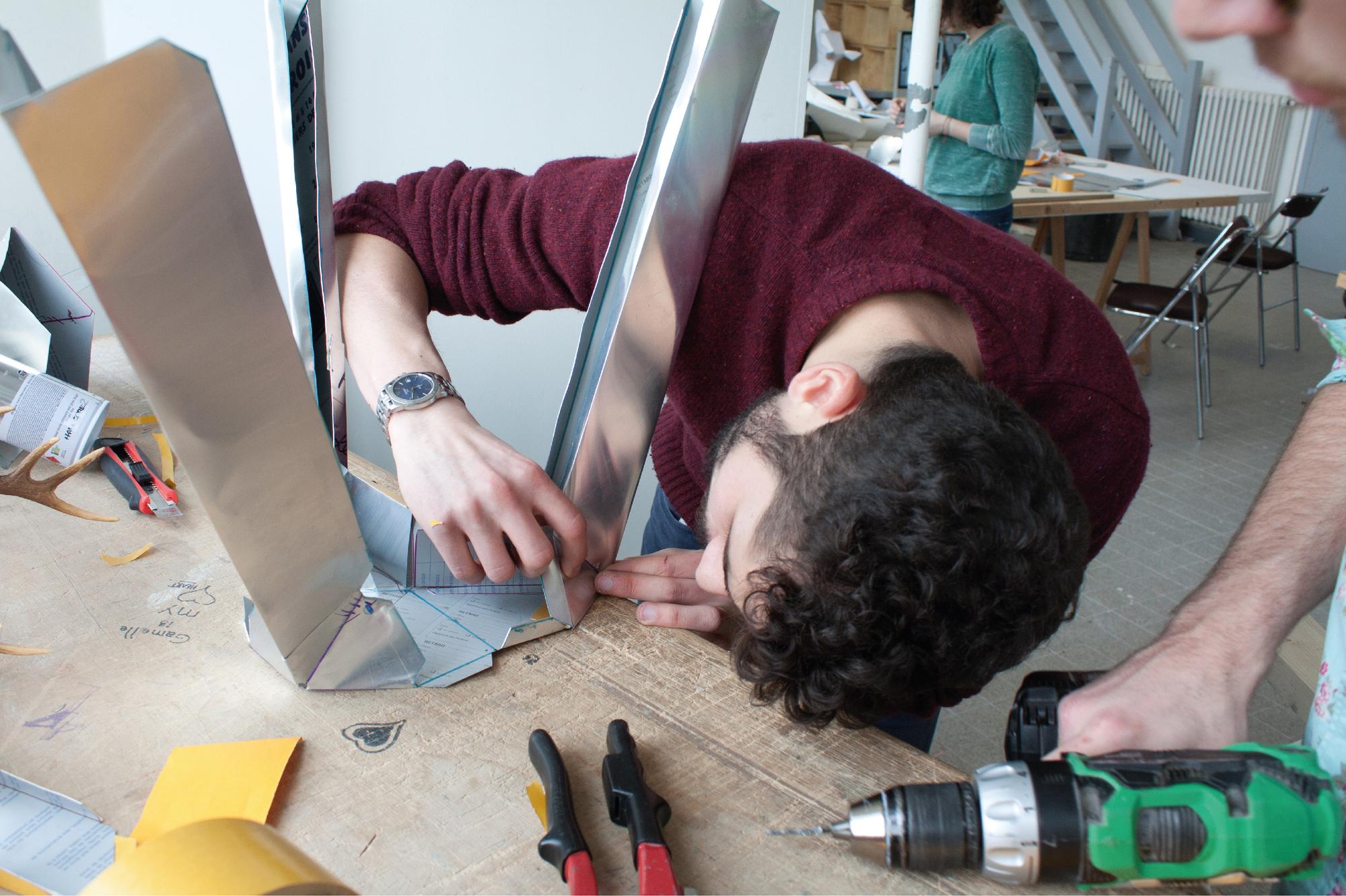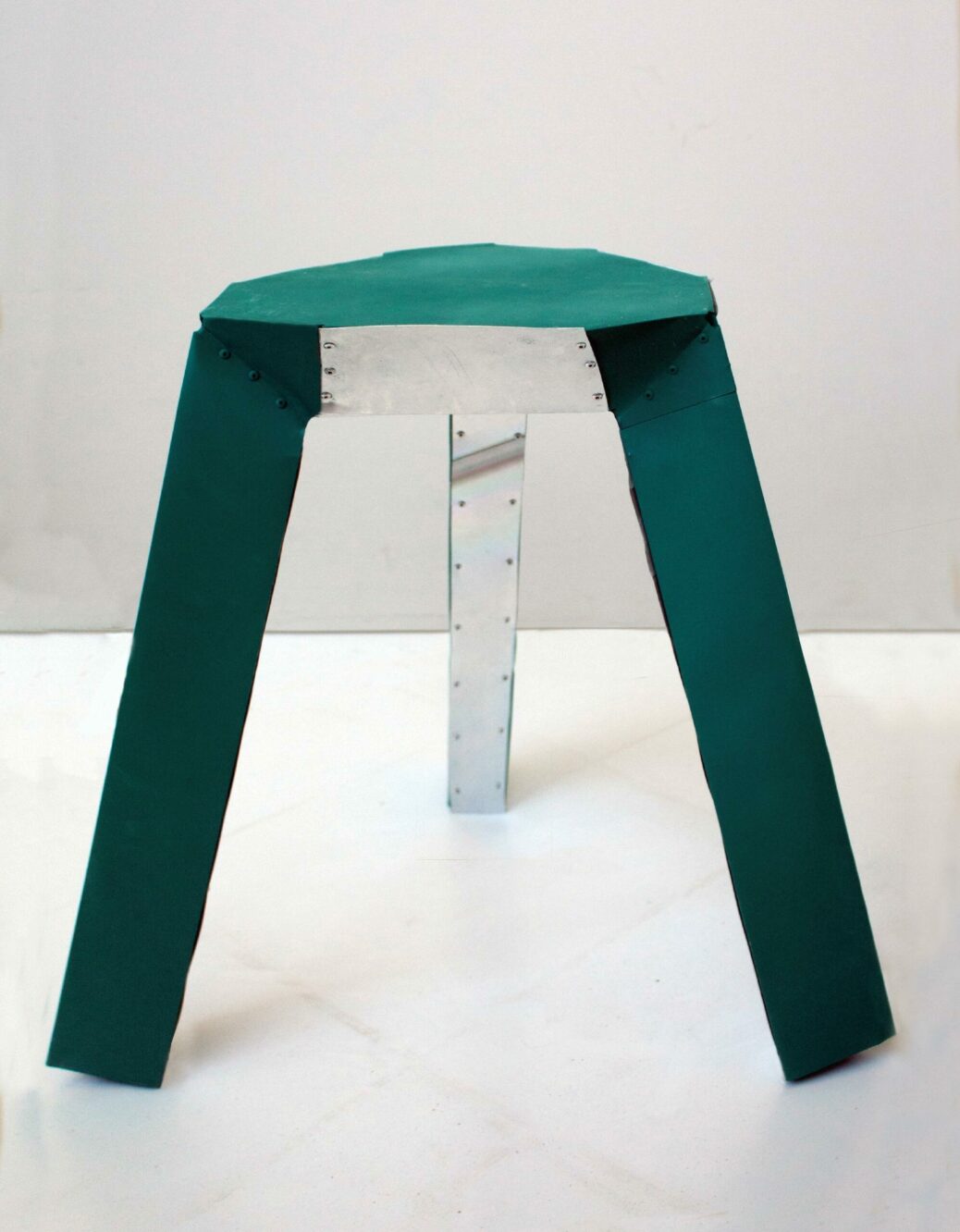 OFFSE(A)T est un tabouret valorisant le réemploi des plaques aluminium d’impression offset.