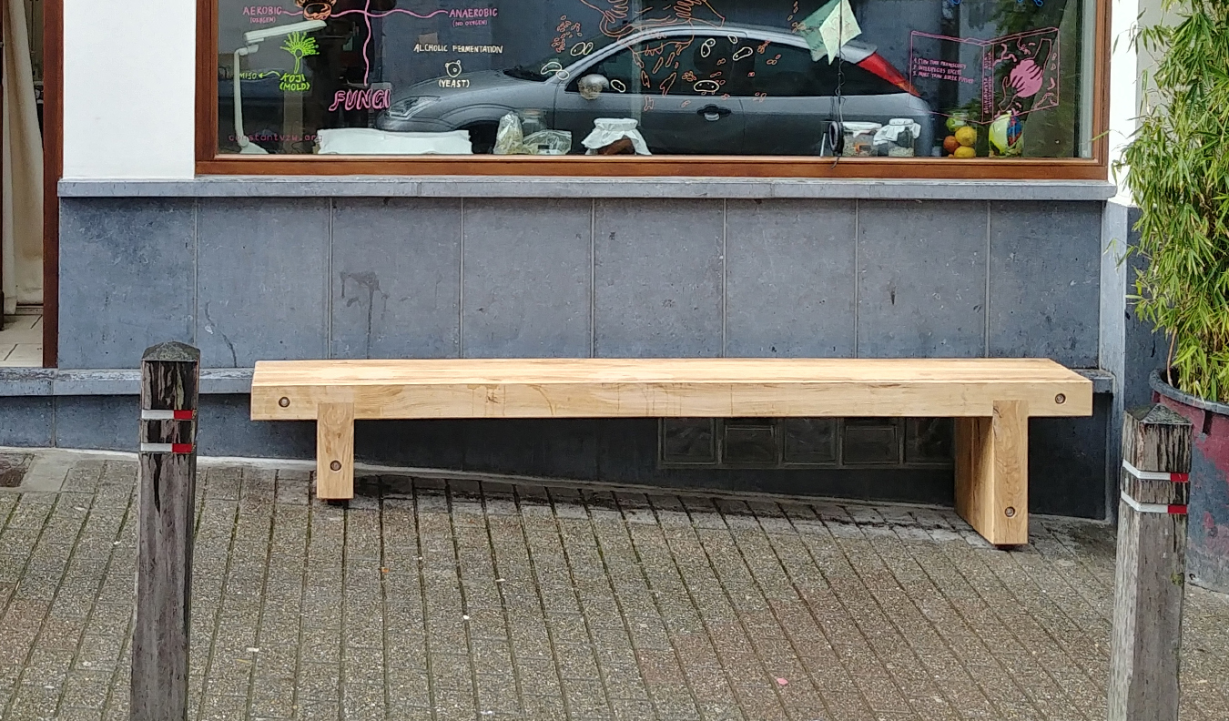 Un banc fabriqué à partir de traverses de chemin de fer neuves. Attention, les anciennes peuvent être très toxiques en raison du traitement qu’elles ont subi !