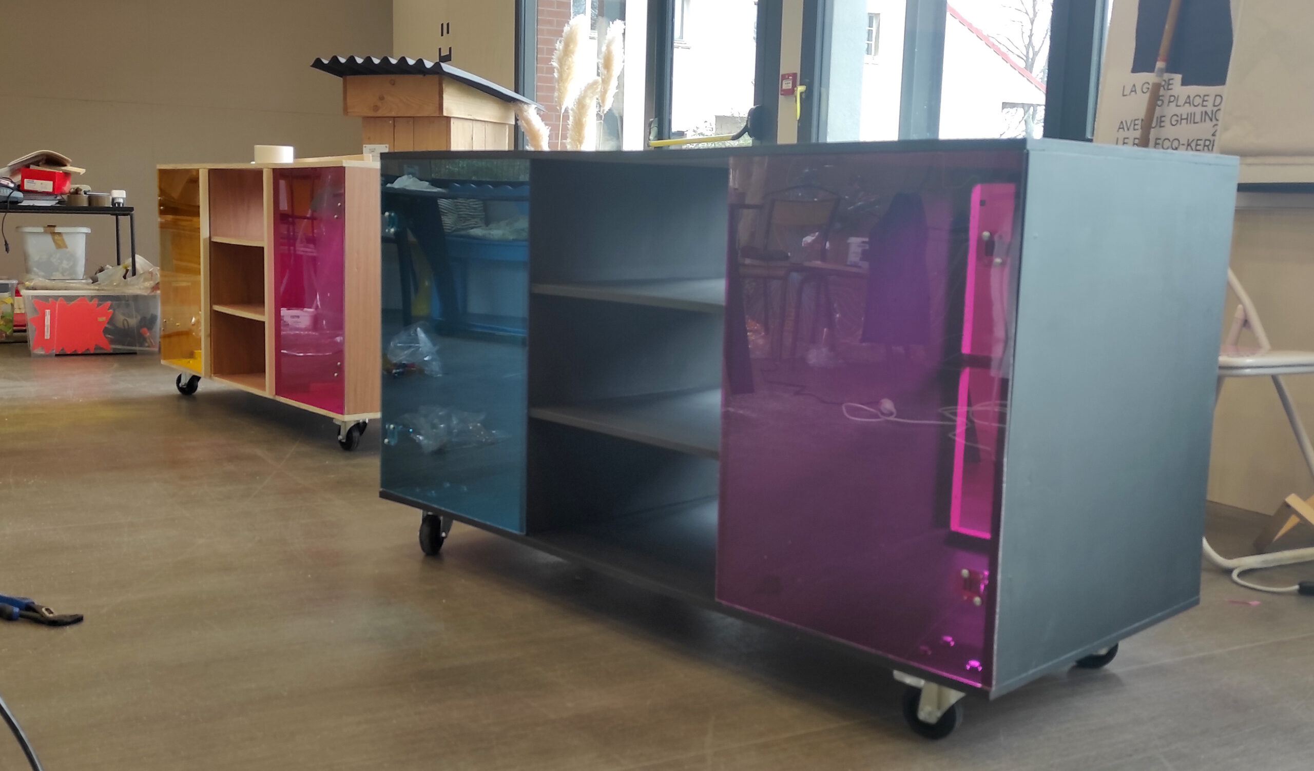 Imaginé pour un usage collectif, rangement d’atelier à la Gare du Relecq-Kerhuon.